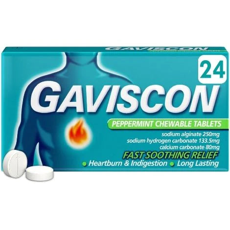 GAVISCON PEPPERMINT CHEWABLE TABLETS 24's